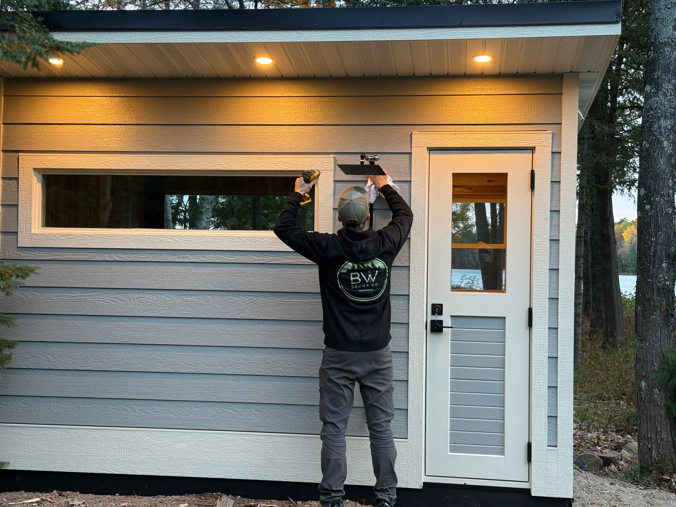 A handcrafted lakeside sauna built