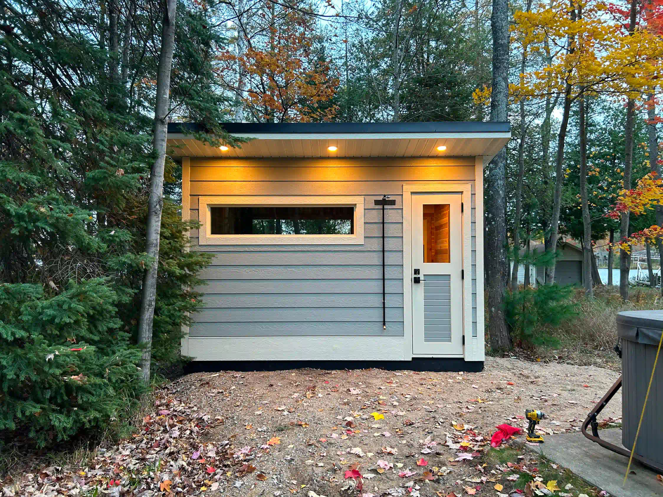 The client wanted more than a standalone building—they wanted a sauna that felt like it had always been part of the property. The design direction was clear from the start: match the existing home and garage with precision. Using LP SmartSide exterior cladding, we mirrored the textures, lines, and colors of the main home, creating a cohesive visual flow from house to sauna. Combined with a reliable wood-fired IKI stove and future-ready electrical wiring, the build balances tradition with thoughtful planning for what’s ahead.