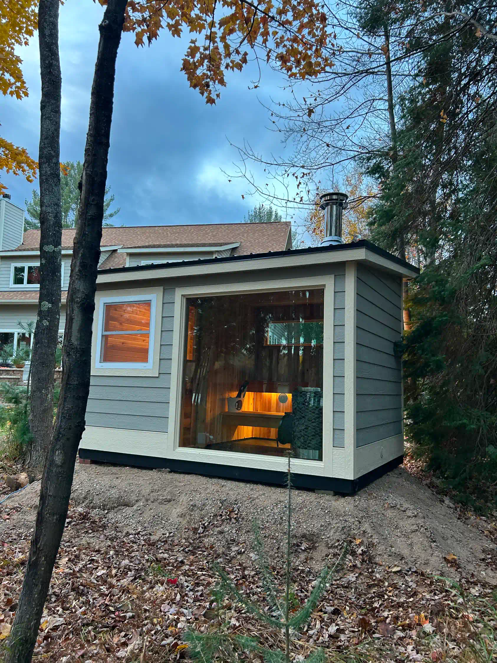 In northern Wisconsin, where quiet forests meet cold lakes and winter lasts just a little longer, a sauna isn’t just a luxury—it’s part of the rhythm of life. This 8×12 custom-built sauna in Eagle River was designed as an extension of that rhythm: a warm, glowing retreat steps away from the client’s home. Crafted with intention, styled to match the existing architecture, and powered by an IKI wood-fired stove, this sauna captures the spirit of the Northwoods while giving the homeowner a sanctuary built for generations.